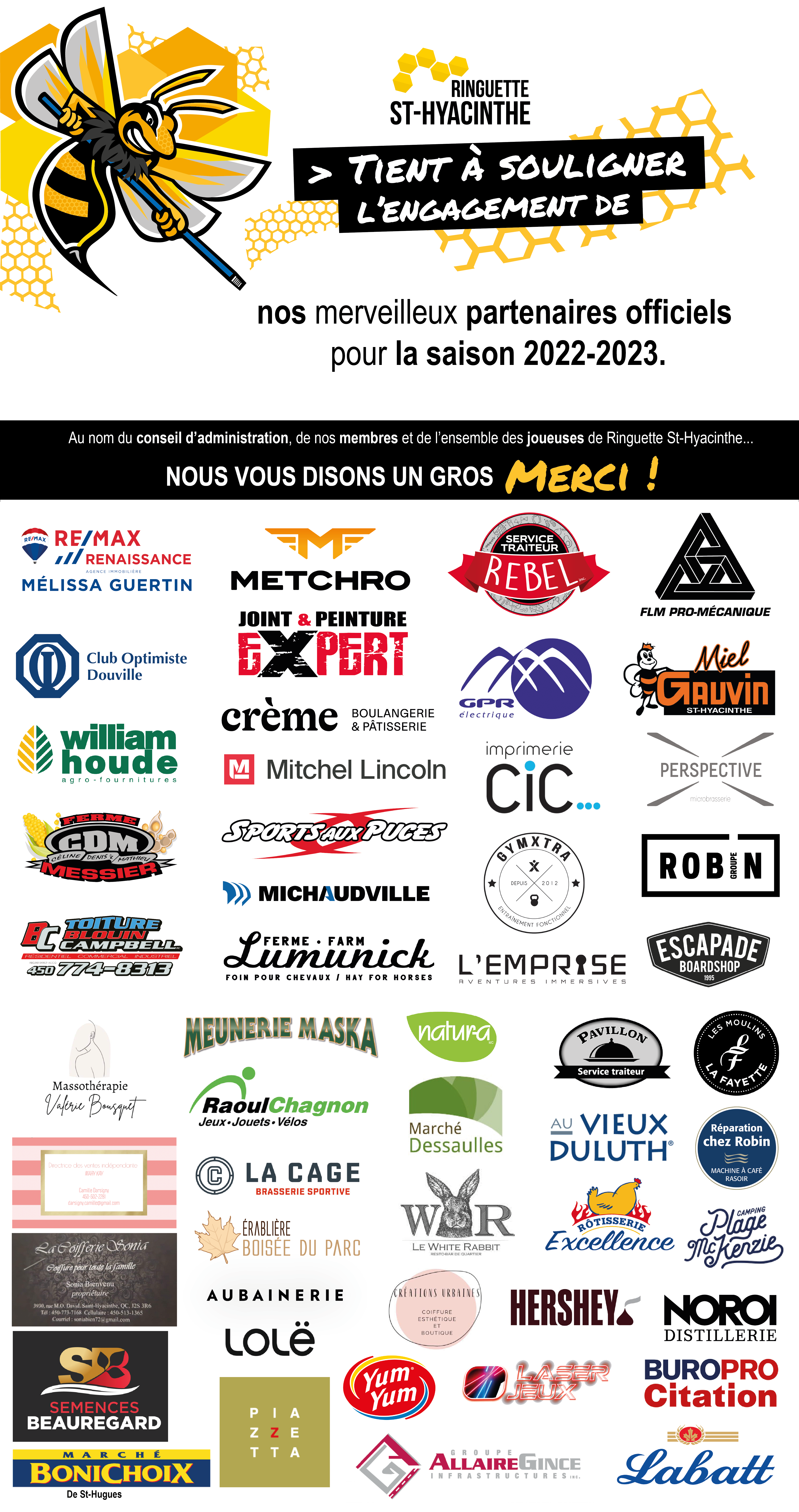 Samedi dernier, le 22 octobre 2022, a eu lieu la Troisième édition du Souper Spaghetti. Ringuette Saint-Hyacinthe souhaiterait dire Merci à vous tous ceux et celles qui étaient présents ainsi qu’à nos merveilleux partenaires, de leur appui sans lequel nous n’aurions pu offrir cet évènement de qualité à nos joueuses de ringuette, leur famille et amis.